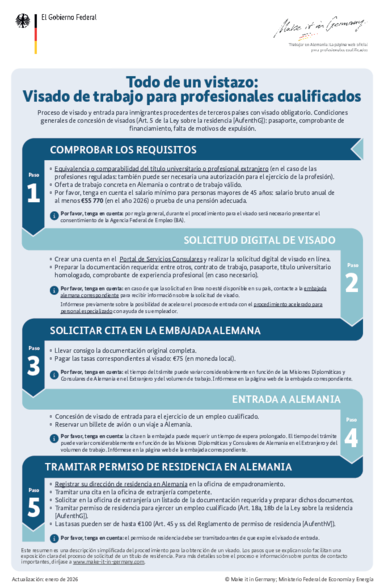 Desde los preparativos hasta los formularios de solicitud: esta guía le muestra, paso a paso, cómo obtener un visado de trabajo para profesionales cualificados/as.